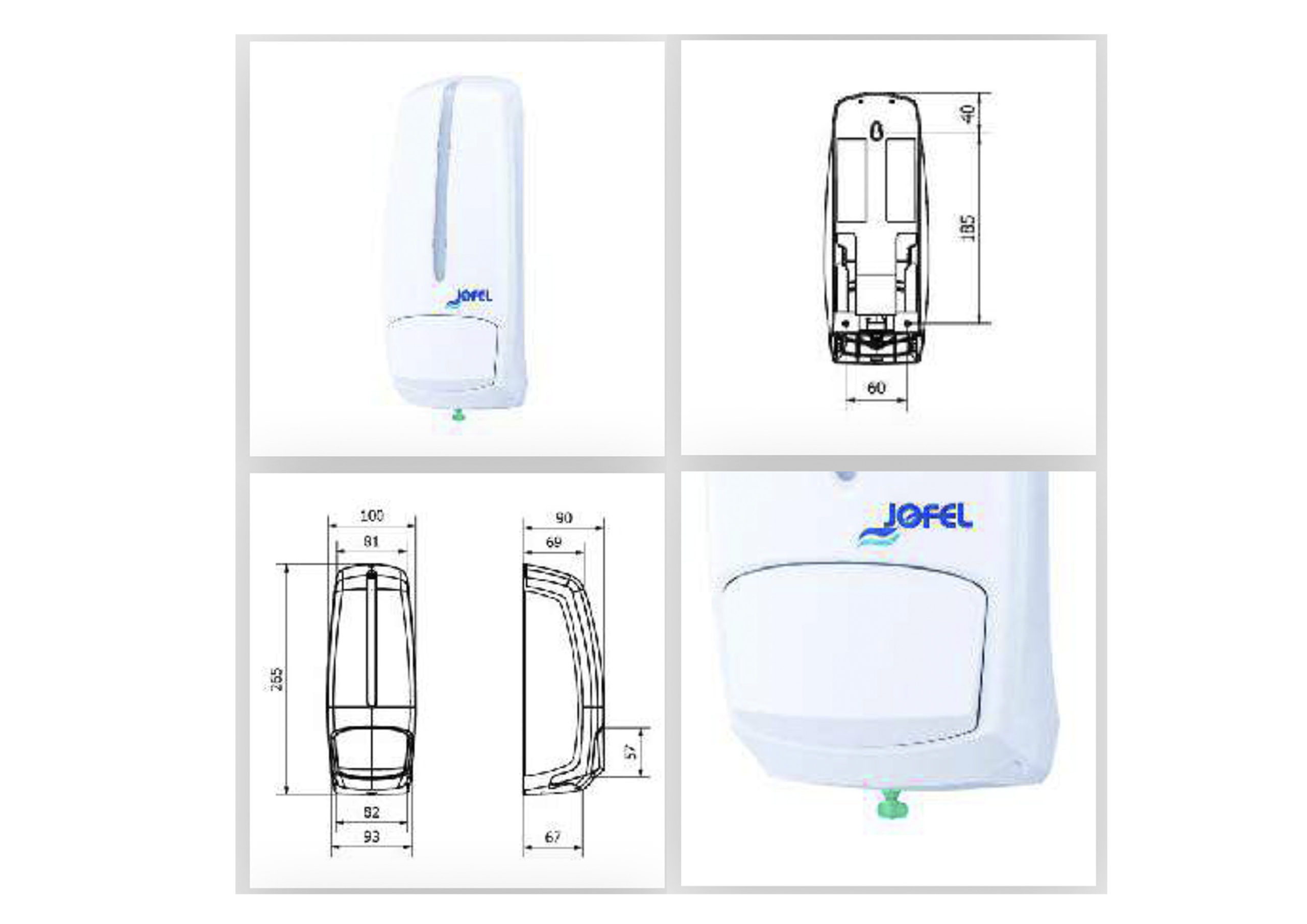 • Dosificador de jabón líquido o gel hidroalcoholico con depósito rellenable.