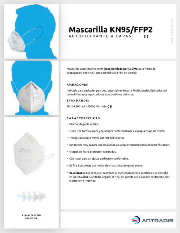 Mascarilla autofiltrante KN95 (recomendada por la OMS para frenar la