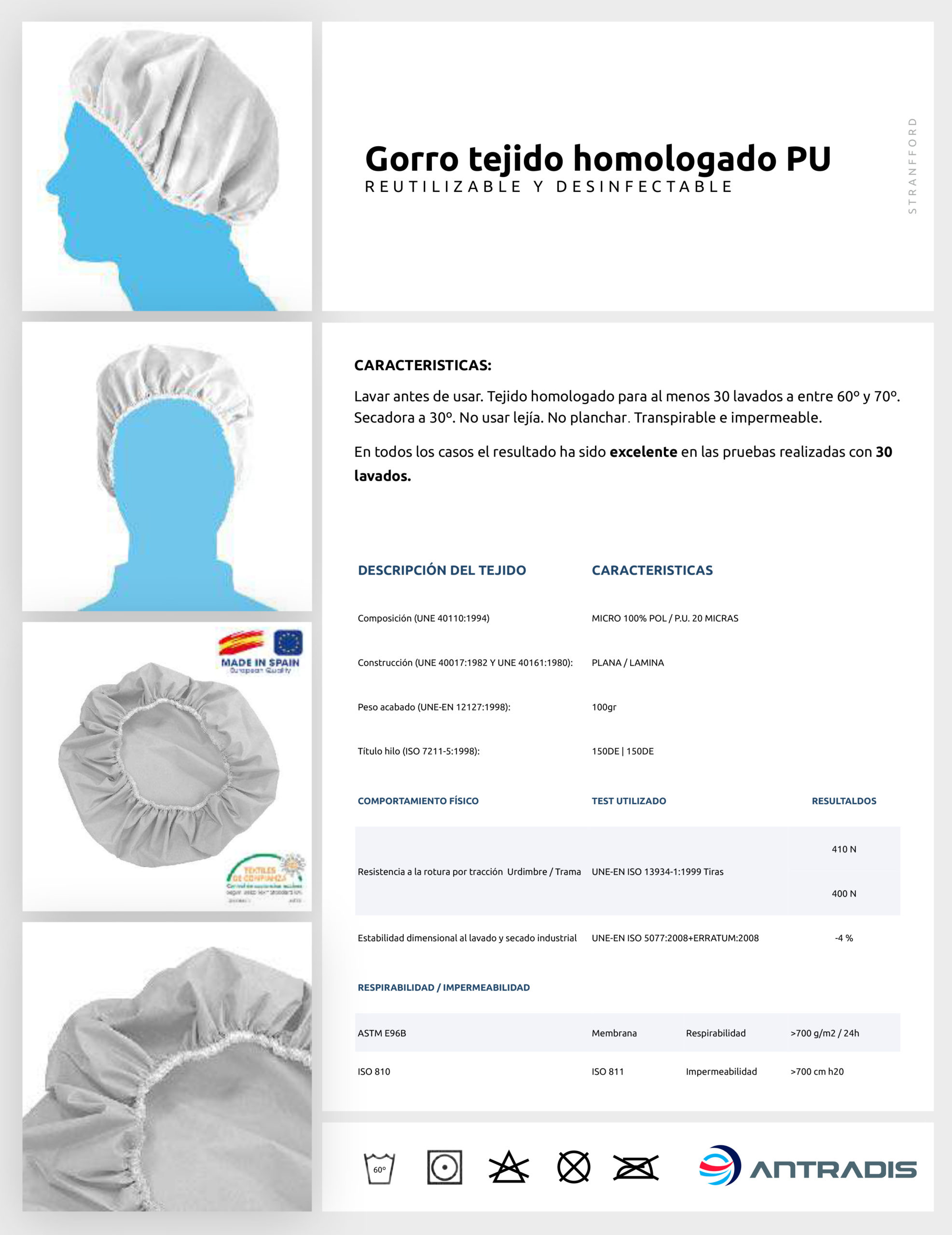 Lavar antes de usar. Tejido homologado para al menos 30 lavados a entre 60° y 70°.